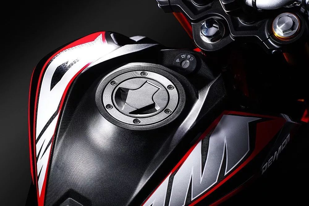新的 Demon 150GN 迷你街車沿用了原有的風(fēng)冷四沖程單汽缸、SOHC 兩汽閥的發(fā)動機(jī),排汽量 149 cc,油/汽混合系統(tǒng)采用了化油器,六檔的變速齒輪箱。車體采用了鋼管編織式的車架,倒立式的前叉、單筒式后減震,前后碟式的制動系統(tǒng),全數(shù)字式的儀表板,以及 14 英寸直徑的前、后輪框。新車的修改部分有兩處:被廠方稱之為 King Of Minibike “ 迷你車之王 ” 的新車身圖案貼紙(貼花),換裝了 LED 的前大燈。
