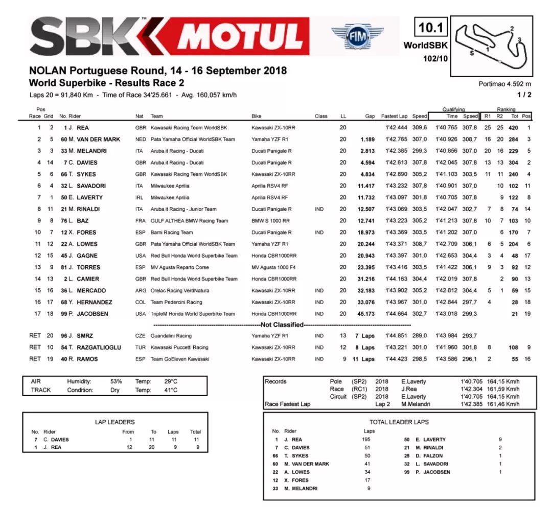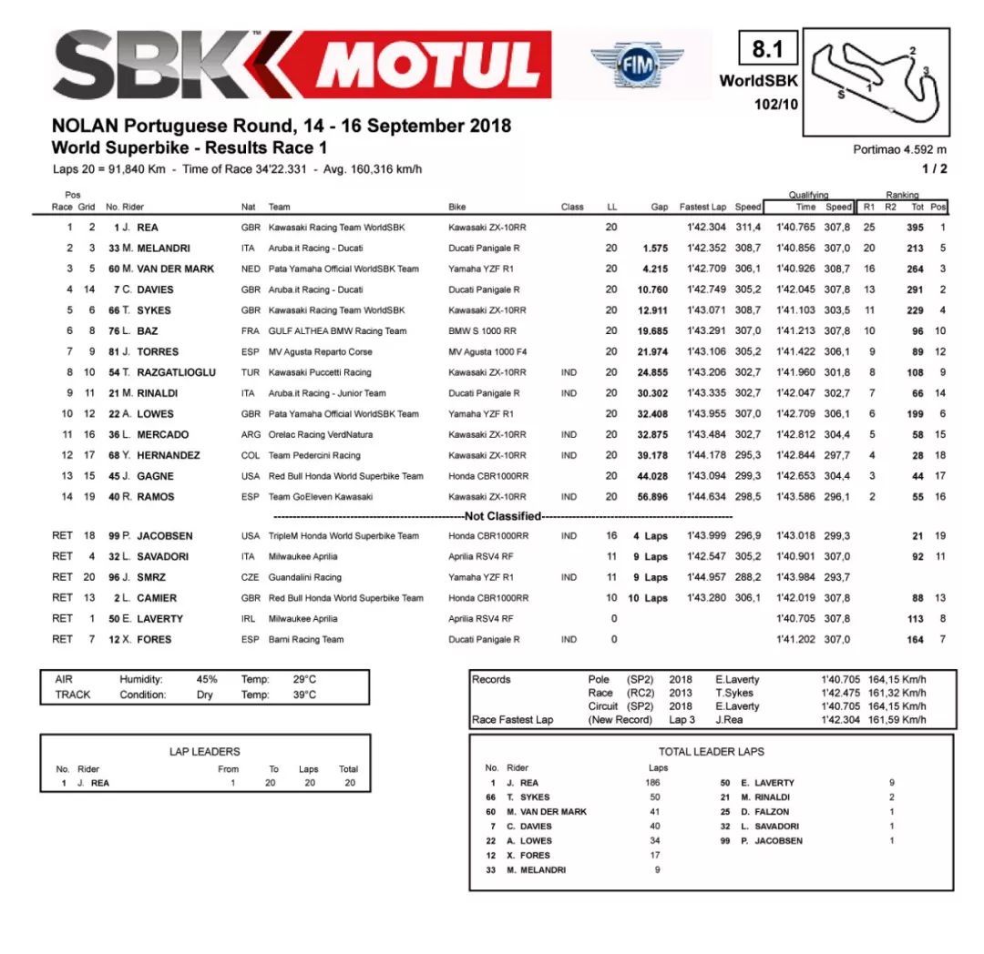 2018 WSBK 葡萄牙站——雷亞獲得全勝