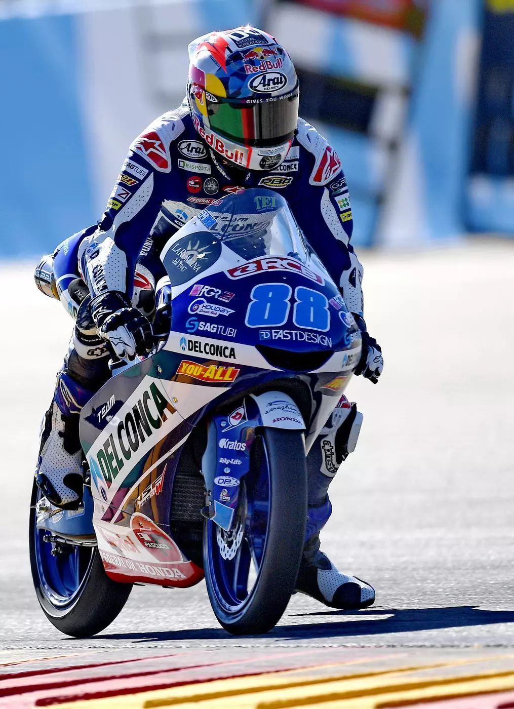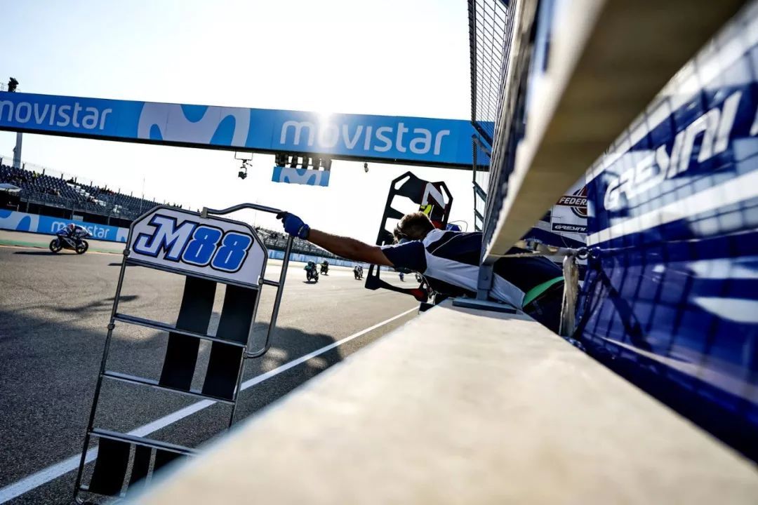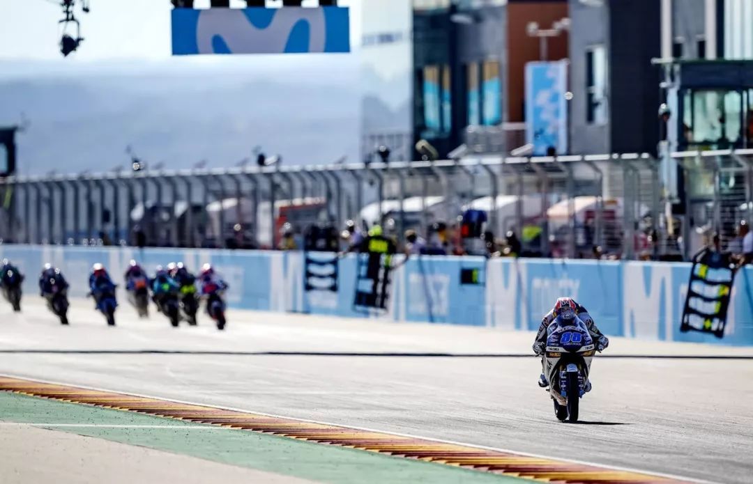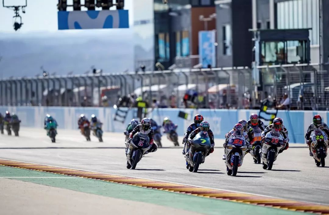 在周日的比賽開始前,多名車手由于違反賽道部分限制規(guī)定而被罰排到第十二位之后起步,其中包括了馬丁在積分榜上的兩個主要對手、 33 號車的巴斯蒂里尼(E. Bastianini,計時練習(xí)成績排第三)和 12 號車的貝澤奇(M. Bezzecchi,計時練習(xí)成績排第六),對于原本已經(jīng)在計時練習(xí)時氣勢如虹的馬丁來說,無疑就是一大的助力,他的隊友吉南托尼奧也從原本的第四排起步、提升到第二排起步。