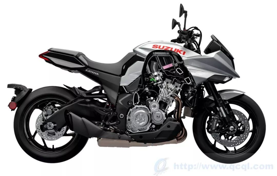 顧名思義,GSX-S1000S Katana 來自現(xiàn)有的旗艦街車 GSX-S1000 平臺。新的 Katana 與 GSX-S1000 一樣,搭載一副來自超級跑車 2005' - 2008' GSX-R1000 的水冷四沖程直列四汽缸、DOHC 每汽缸四汽閥的發(fā)動機,缸徑、行程為 73.4 mm x 59 mm,排汽量 999 cc,最大動力輸出 110 kw(約 150 匹)。