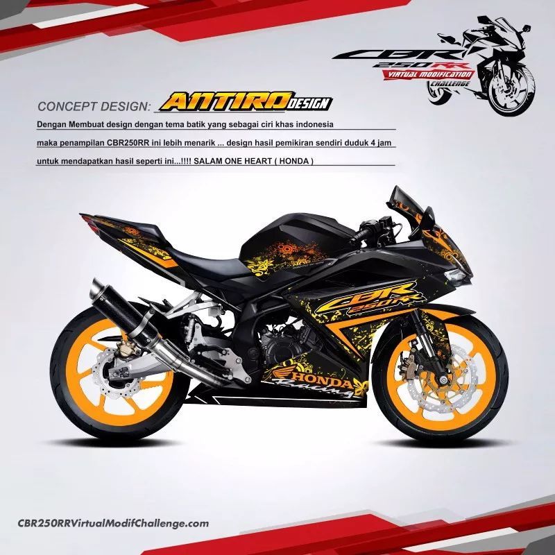 Honda 在印尼當(dāng)?shù)氐暮腺Y企業(yè) PT Astra Honda,早前在當(dāng)?shù)嘏e辦了一個名為 CBR250RR Virtual Modification Challenge(CBR250RR 虛擬改裝挑戰(zhàn)賽)的有獎活動。