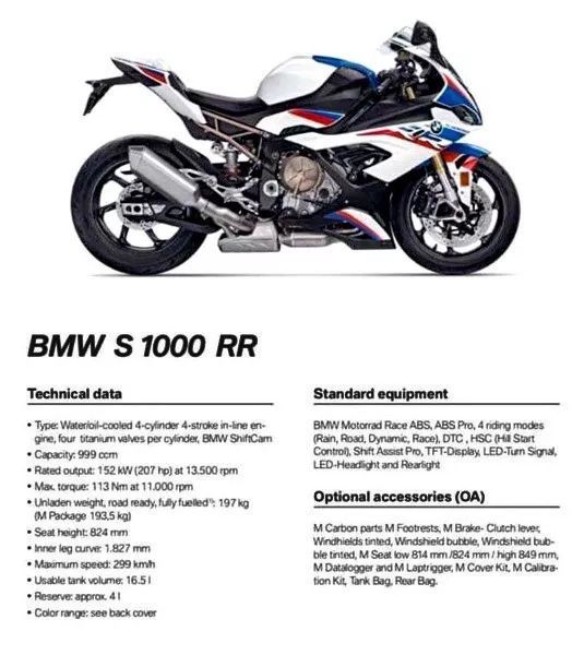 寶馬新 S1000RR 超級(jí)跑車參數(shù)曝光