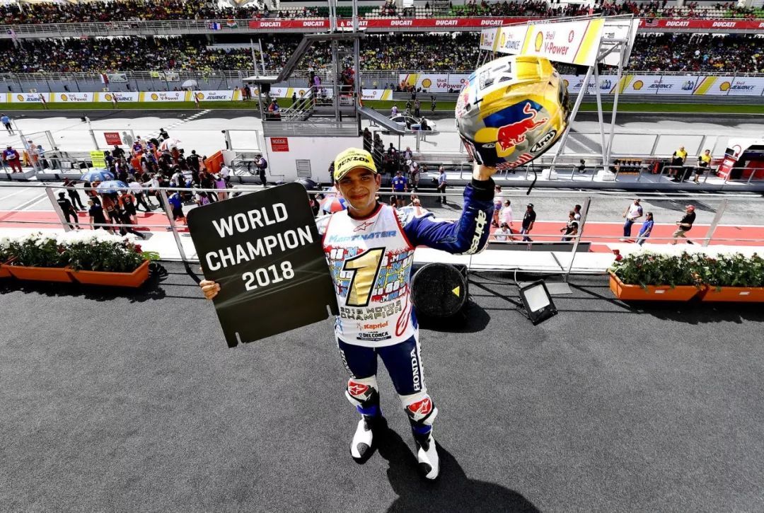 在拿下了馬來西亞站的冠軍之后,馬丁以 240 分提前獲得了今年的 Moto3 世界冠軍。而在本站拿到第五的貝澤奇、總積分有 214 分,即使在最后一站奪冠也只有 239 分。