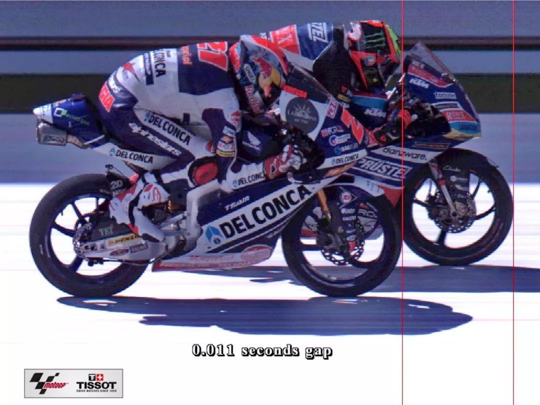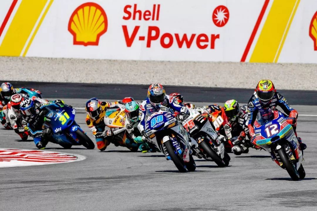 比賽的上半段,十多位車手在第一集團里、誰也不服誰地穿插著,不停地交換著位置、讓屏幕顯示的名次在瞬間失去了 100% 的精確性,這就是 Moto3:前十名車手,差距通常也就是那么一秒來鐘的事情。