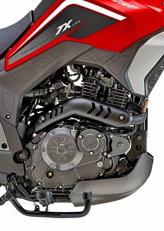 與 TX125 一樣、新的 TX125 探險(xiǎn)版搭載一副類似 GS 機(jī)的風(fēng)冷單缸 SOHC 兩汽閥發(fā)動(dòng)機(jī),官方公布的最大動(dòng)力輸出是 7.8 kw(約 11 匹),配備了倒立式的前叉、單筒式的后減震,“ 國產(chǎn)風(fēng) ”的波浪式前后剎車碟,帶底盤護(hù)罩,數(shù)字式的儀表板,以及前、后 17 英寸直徑的輪框。新的 2019 款 TX125 探險(xiǎn)版采用了一個(gè)新的車身圖案,并加裝了 CBS 前后聯(lián)動(dòng)剎車裝置。