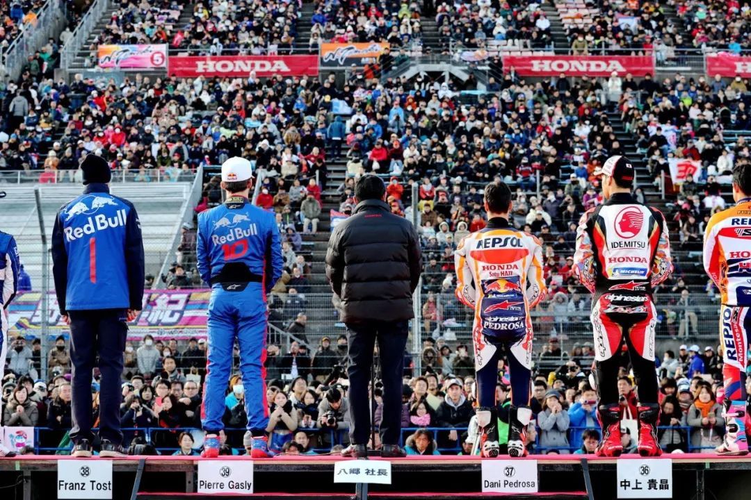 Honda 的這項(xiàng)活動(dòng)在 2016 年開(kāi)始舉辦,今年是第三屆。廠(chǎng)方稱(chēng),Honda 每年在全球各地參與超過(guò)一百項(xiàng)的比賽,舉辦這個(gè)活動(dòng)是為了感謝粉絲們的支持。此前兩屆一直有出席的西班牙車(chē)手馬昆斯,因?yàn)樯现軇?dòng)了左肩手術(shù)而缺席了今年的活動(dòng)。最靠近中間的站位,在摩托車(chē)的這一排、今年變成了彼杜沙。