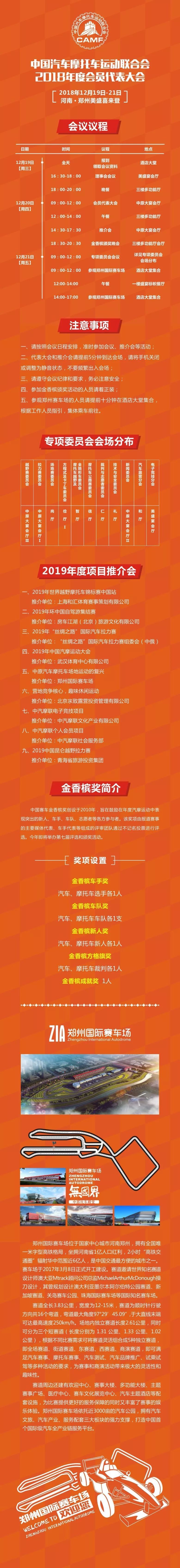 為更好的服務(wù)于當(dāng)前的汽車社會(huì),由中國(guó)汽車摩托車運(yùn)動(dòng)聯(lián)合會(huì)(中汽聯(lián))主辦、河南田川博泰汽車產(chǎn)業(yè)園有限公司承辦的第十屆中汽聯(lián)年會(huì)將于2018年12月19號(hào)-21號(hào)(3天)在河南省鄭州市美盛喜來登酒店(鄭州市金水區(qū)金水東路33號(hào))舉行,于20號(hào)晚19:30-21:30舉行中汽摩聯(lián)金香檳獎(jiǎng)?lì)C獎(jiǎng)晚會(huì)。共同探討中國(guó)汽車產(chǎn)業(yè)的未來,中原汽車市場(chǎng)的愿景。