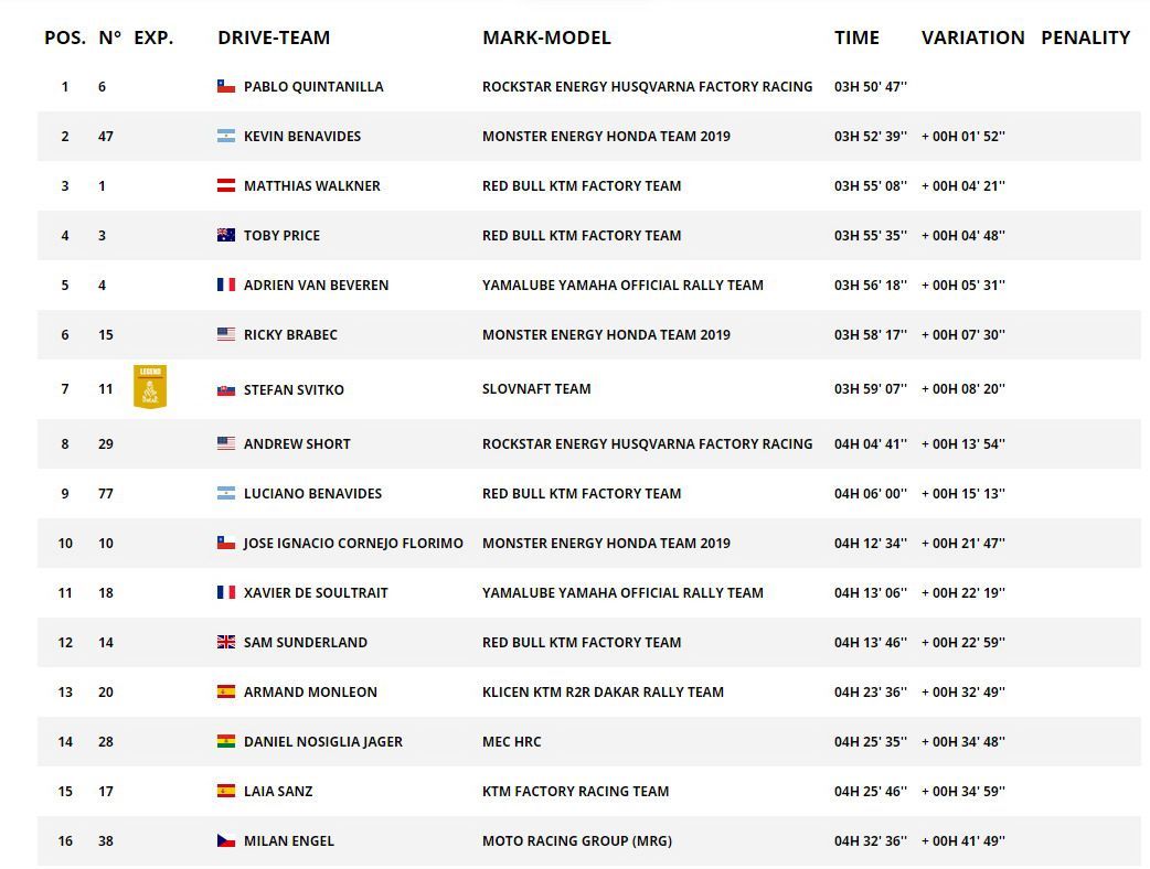 憑借著在賽前就已經(jīng)準(zhǔn)備好的、具攻擊性的行使計(jì)劃,Just1 頭盔的合作伙伴、駕駛 6 號(hào)車、Husqvarna 胡斯瓦那工廠車隊(duì)的昆塔尼拉(Pablo Quintanilla)奪得了第六賽段的冠軍,并重新返回榜首。