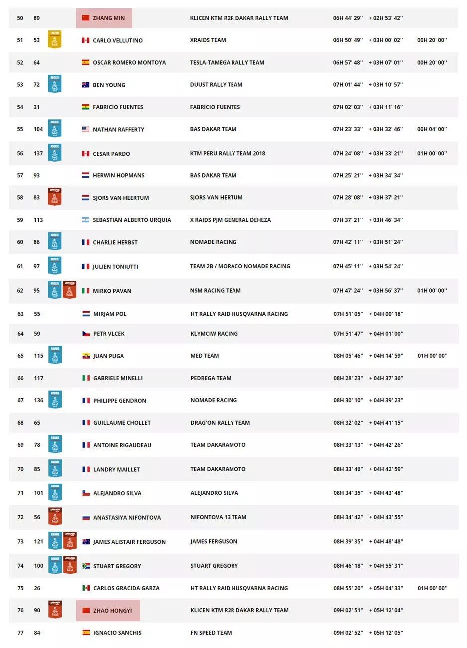 兩位中國(guó)車手,駕駛 89 號(hào)車的張敏、在第六賽段跑出了佳績(jī):第 49 名。而駕駛 90 號(hào)車的趙宏義則獲得了第 93 名。