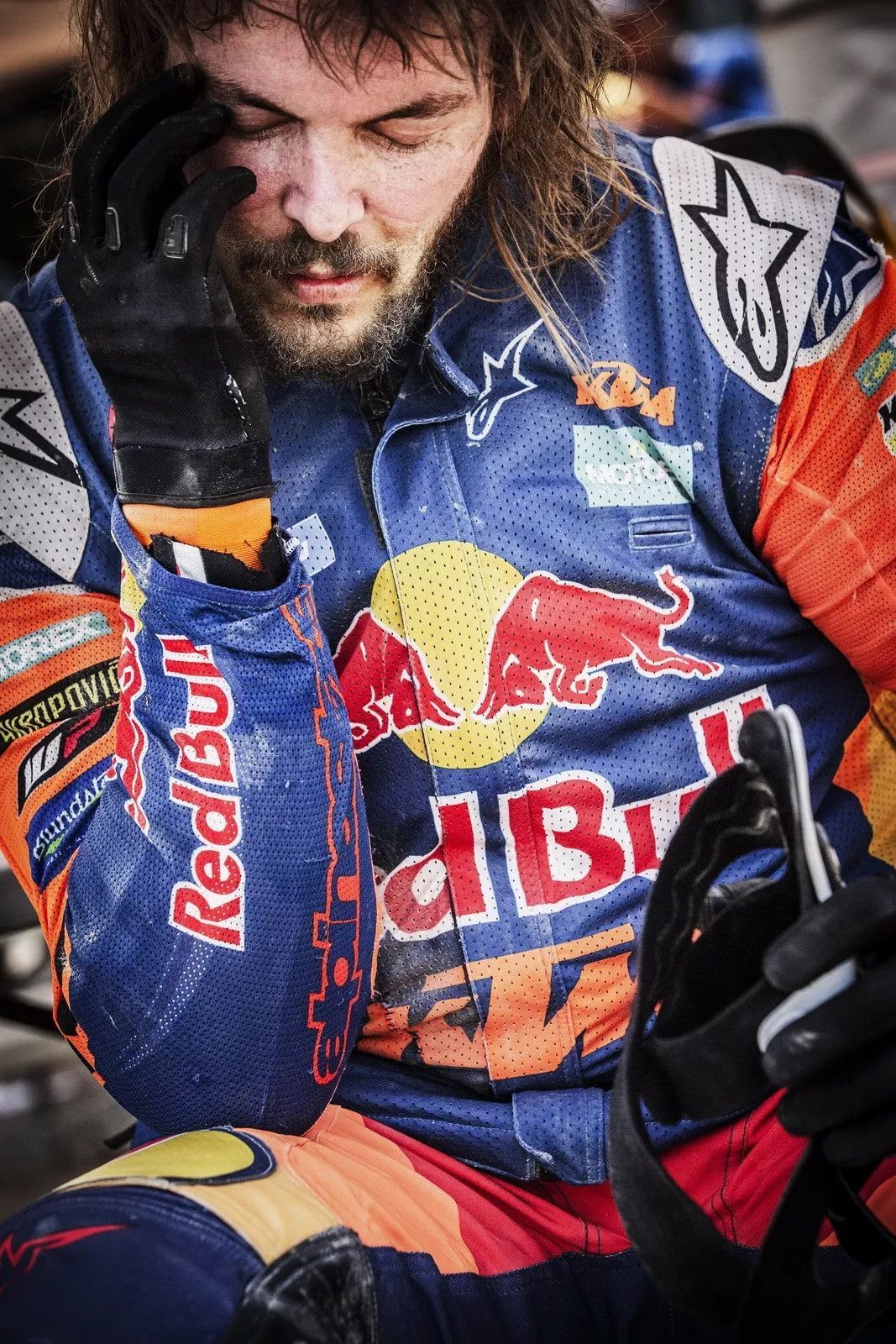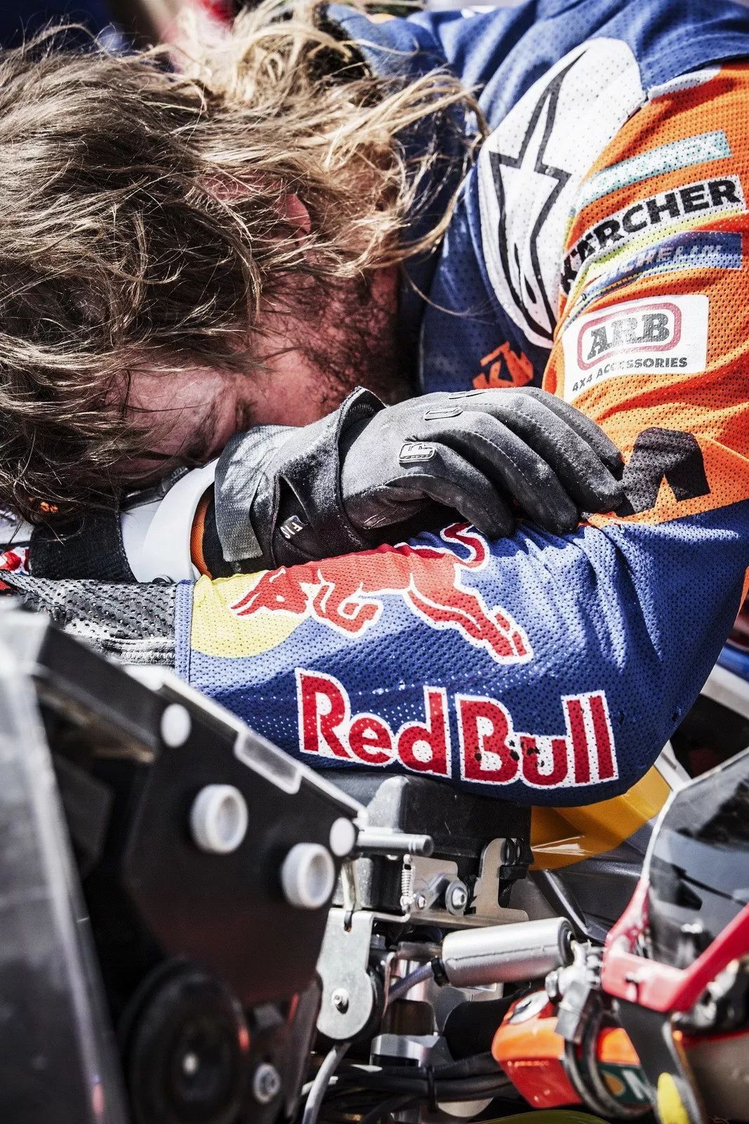 Just1 頭盔的合作車手,駕駛 6 號(hào)賽車、胡斯瓦那車隊(duì)的昆塔尼拉(Pablo Quintanilla),為了縮短與第九賽段之后、暫居榜首的普萊斯(Toby Price)僅僅只是大約一分鐘的差距,在第十賽段比賽、一進(jìn)入特殊賽段就采用狂飆的策略,但在越過一個(gè)沙丘的時(shí)候、重重地摔倒在沙堆上,盡管經(jīng)過醫(yī)護(hù)人員的快速處理,昆塔尼拉重新回到賽道、并掙扎著回到了終點(diǎn),但已經(jīng)失去了爭(zhēng)奪總冠軍的機(jī)會(huì)。