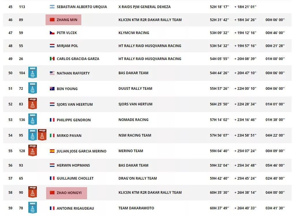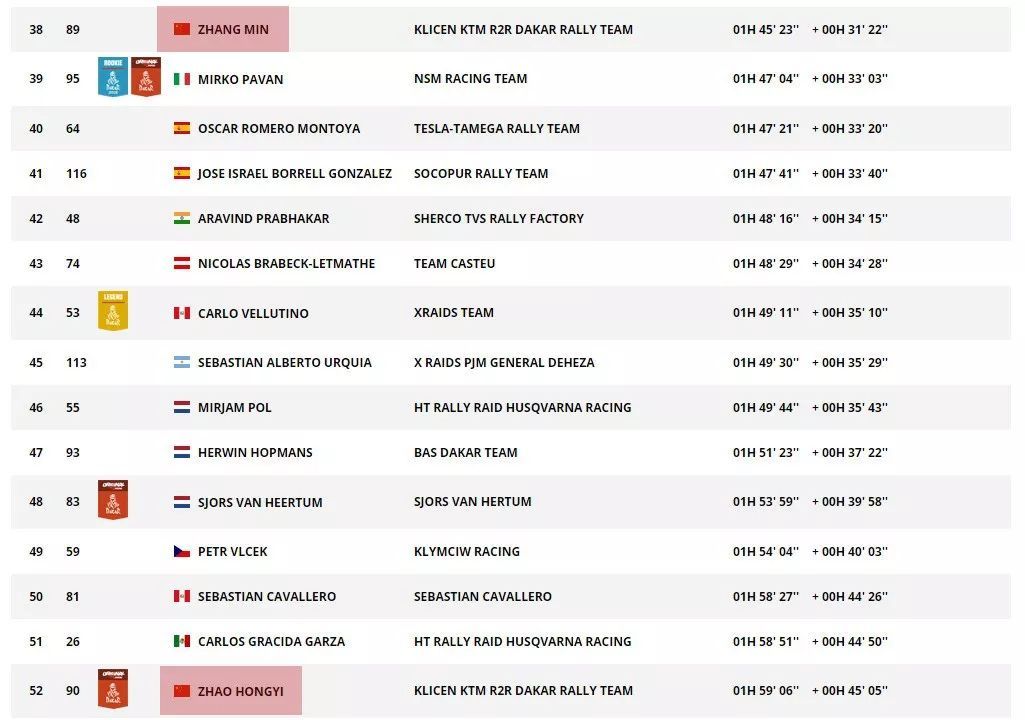 兩位中國(guó)車手都取得了不錯(cuò)的成績(jī),駕駛 89 號(hào)車的張敏、在第十賽段獲得了第 38 名。駕駛 90 號(hào)車的趙宏義、獲得了第 52 名。