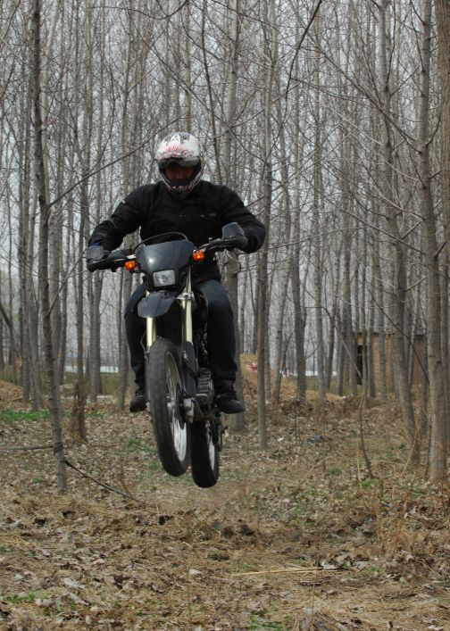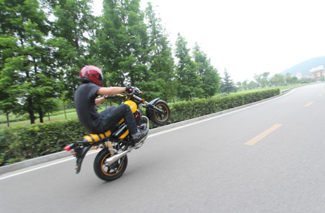 本人最早知道摩托車特技的具體時(shí)間已經(jīng)記不清了。那還是上世紀(jì)90年代初,在一本國(guó)外的雜志上看到一張騎大排量多缸車抬前輪的照片。當(dāng)時(shí)真是驚為天人,怎么也想不到摩托車還能這么騎。那時(shí)的我還騎著一輛笨重的兩沖程幸福XF250A,別說(shuō)是抬前輪了,就是知道怎么操作(后來(lái)得知小排量抬前輪的第一步是大油門彈離合),把離合器摩擦片磨光了也抬不起來(lái)的。