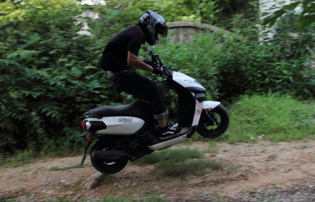 工作原因,我常年在車迷圈中走動(dòng),與摩托特技群體的聯(lián)系也很密切。從2010年開始,發(fā)現(xiàn)本地用嘉陵“白菜”玩特技的車迷越來(lái)越少了,玩踏板車技巧動(dòng)作的漸漸多了。曾為媒體做過(guò)一次踏板車特技的專題,那天晚上,在市郊那條還未通車的柏油路上集結(jié)了近三十輛小排量(100mL為主)踏板車,十幾輛車并排抬前輪的場(chǎng)面的確很震撼……
