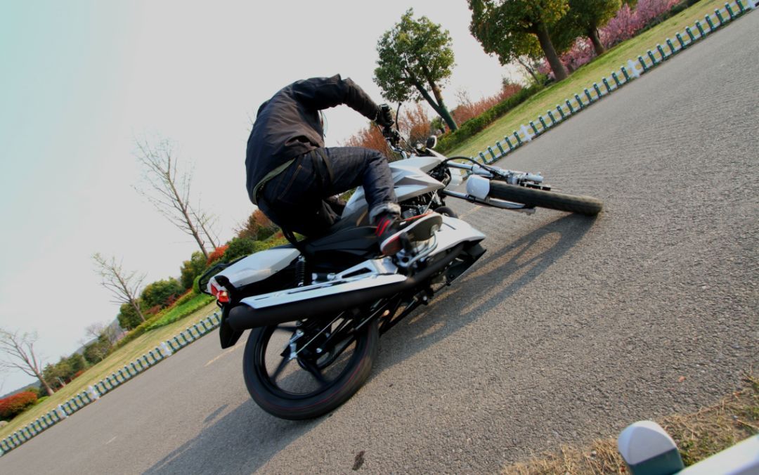 又動(dòng)了心,決定練一練這個(gè)動(dòng)作,感覺(jué)這樣頂多磨磨輪胎,不會(huì)像抬前輪那樣毀車。但是,不毀車,毀腿——在一次練習(xí)中,滾燙的排氣管粘在腿上,嗞啦一聲香氣撲鼻,留下了一塊陪伴終生的傷疤……這一次意外讓我徹底老實(shí)下來(lái),腿傷好了之后再也不敢折騰了。
