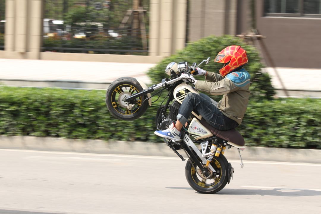 可以這么說(shuō),踏板車特技是最適合一般收入年輕車迷的“平民特技”,這也是這種特技流派在國(guó)內(nèi)迅速普及的主要原因。在上文提到的多缸大排量車特技,雖然在近年來(lái)的群體規(guī)模有壯大的趨勢(shì),但相比小排量車還只能稱其為“小眾”。主要原因還是成本太高。除了那些財(cái)力雄厚的車迷會(huì)用新款雅馬哈R1、鈴木大R等真正的公升級(jí)大排量玩特技,玩多缸車技巧的車迷大多會(huì)選擇動(dòng)力相對(duì)更易掌控且價(jià)格也比更大排量車型低許多的600mL級(jí)日系四缸車,為節(jié)省成本,許多人會(huì)購(gòu)買N手舊車,經(jīng)過(guò)適當(dāng)改裝后投入使用。所謂改裝,大多是換加大后鏈盤(提升低扭)、加固車架、做車體防摔處理、加裝省力離合裝置、升級(jí)制動(dòng)系統(tǒng)等,一些車手還會(huì)拆去不影響性能的外觀覆蓋件。多缸車技巧駕駛的控車難度和風(fēng)險(xiǎn)更大,是摩托特技的最高境界,能達(dá)到這一步的,基本上是特技界的“老炮”了,都是從小排量一步步摔打出來(lái)的。