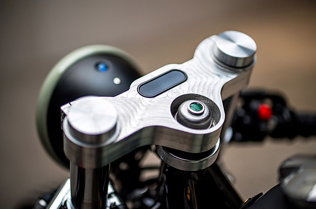 不過這次,艾簡和伙伴艾力克、山姆的做法與之前不太一樣,想要的是“古典的噴涂,強烈的金屬質感,前衛(wèi)激進的造型”。為此,他們改變了古典摩托車的氣質,讓這輛老“拳擊手”車型變得見棱見角、攻擊力十足!比如,為了讓“異形”獲得攻擊性的造型,他們把前部的前叉縮減了60mm,同時在后部安裝上更長的后減震器,輻射出超級NK般的霸氣。細節(jié)方面同樣見功力,我們尤其喜愛“異形”上的尊普達油箱,以及處理油箱的保時捷356古典跑車的噴涂,增添了老“拳擊手”的品味。