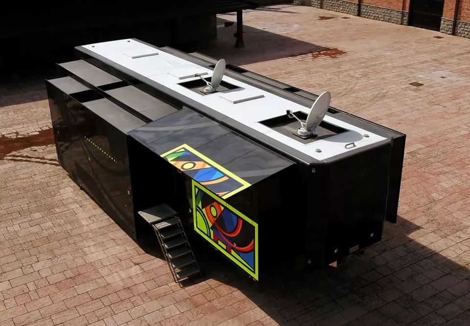以羅西的房車為例,只有35㎡的房車停下之后,利用內部的電機和模塊,可以擴展到74㎡,內部尺寸加倍也為里面的布置提供更多可能。羅西的房車已經能夠達到兩室一廳的水平,里面有客廳、廚房、會議室、臥室,浴室等豪華設施,車頭部分的兩見雙人臥室,由獨立的單人床組合,可以合并也可以隱藏。同時房車內還有先進的自動化系統(tǒng),可以自動調節(jié)燈光,溫度以及控制窗簾和音樂,甚至還可以控制車外的照明系統(tǒng)。整個房車還有兩個衛(wèi)星天線、全套監(jiān)控系統(tǒng)、Bose音響系統(tǒng)等。
