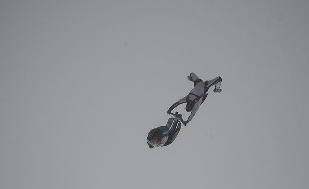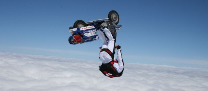 或許是上次的熱氣球之旅不夠過癮,前不久Günter Schachermayr決定再次挑戰(zhàn)自己,在為自己的VESPA設(shè)計(jì)好降落傘之后,他與團(tuán)隊(duì)登上了一架小型飛機(jī),開啟了高空人車跳傘之旅。飛機(jī)爬升到7000米高空后,他騎在VESPA上被助手推出機(jī)艙,在下墜途中Günter Schachermayr一直在試圖抱住他的VESPA,雖然最后車輛下墜太快,他沒法繼續(xù)抓住車輛不得已人車分離(VESPA車上有單獨(dú)的降落傘),但這次瘋狂的挑戰(zhàn)還是吸爆了人們的眼球,或許他心里已經(jīng)在謀劃下次的萬(wàn)米跳傘計(jì)劃?
