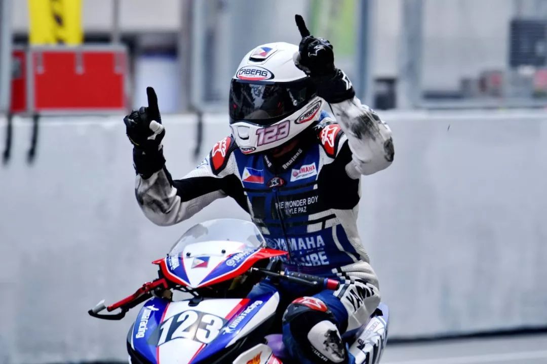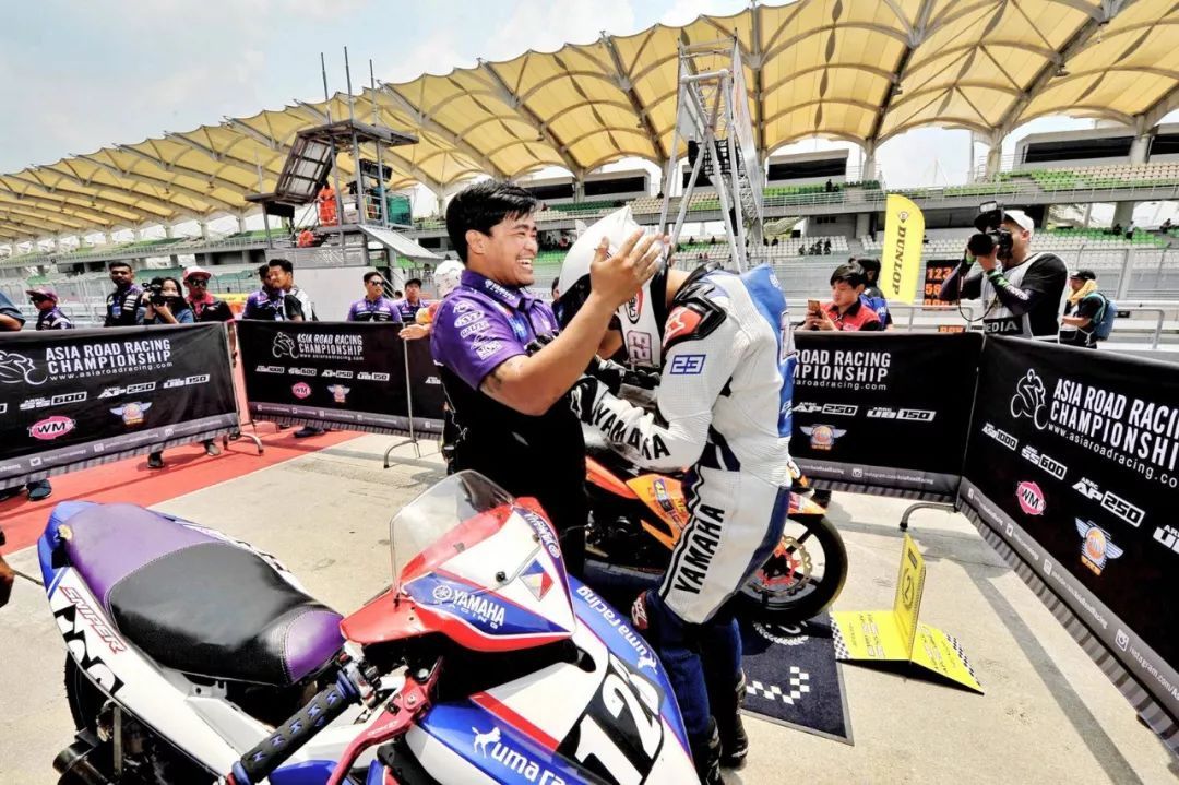 福建友力企業(yè) 所支持的 UMA 車隊,先在昨天(三月 9 日)舉行的 UB150 彎樑級別第一節(jié)比賽中、旗開得勝,參賽的兩支車隊(UMA Yamaha 菲律賓工廠車隊、UMA Yamaha Maju Motor 車隊),各有一名車手登上了頒獎臺:駕駛 123 號車的 M. Kyle Paz 奪得了冠軍,駕駛 13 號車的阿齊茲(Md Akid Aziz)奪得了第三名。