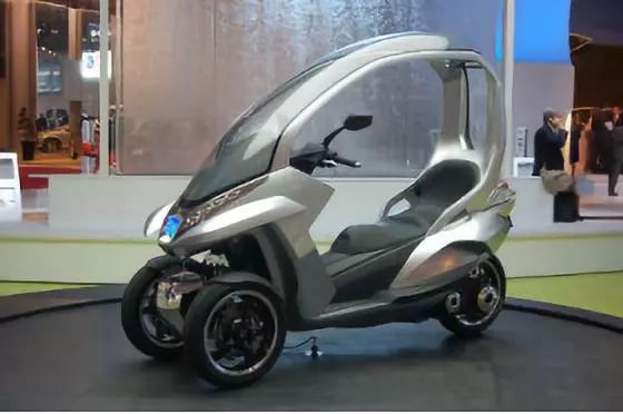 2008年的巴黎博覽會(huì)上,標(biāo)致隆重推HYmotion3倒三輪摩托。這款劃時(shí)代的產(chǎn)品,由標(biāo)致汽車和標(biāo)致摩托聯(lián)合研發(fā),它融合了汽車和踏板摩托車的特點(diǎn),不僅具備較高的穩(wěn)定性和操控性,也可以像兩輪踏板車那樣輕松穿越擁擠的城市街道。借鑒標(biāo)致RCZ跑車,HYmotion3倒三輪配備的帶骨架“氣泡”頂棚,比一般頂棚更寬,對(duì)駕乘人員包覆性也更強(qiáng),可以有效避免了日曬雨淋和保護(hù)人身安全。