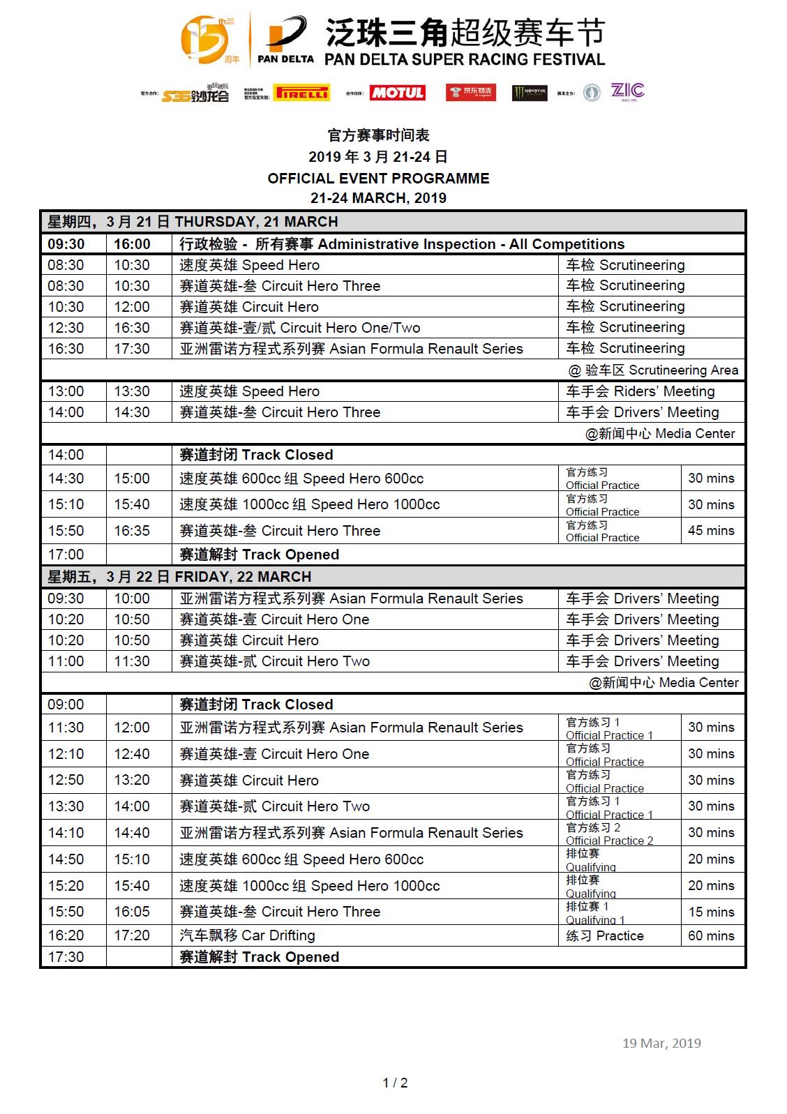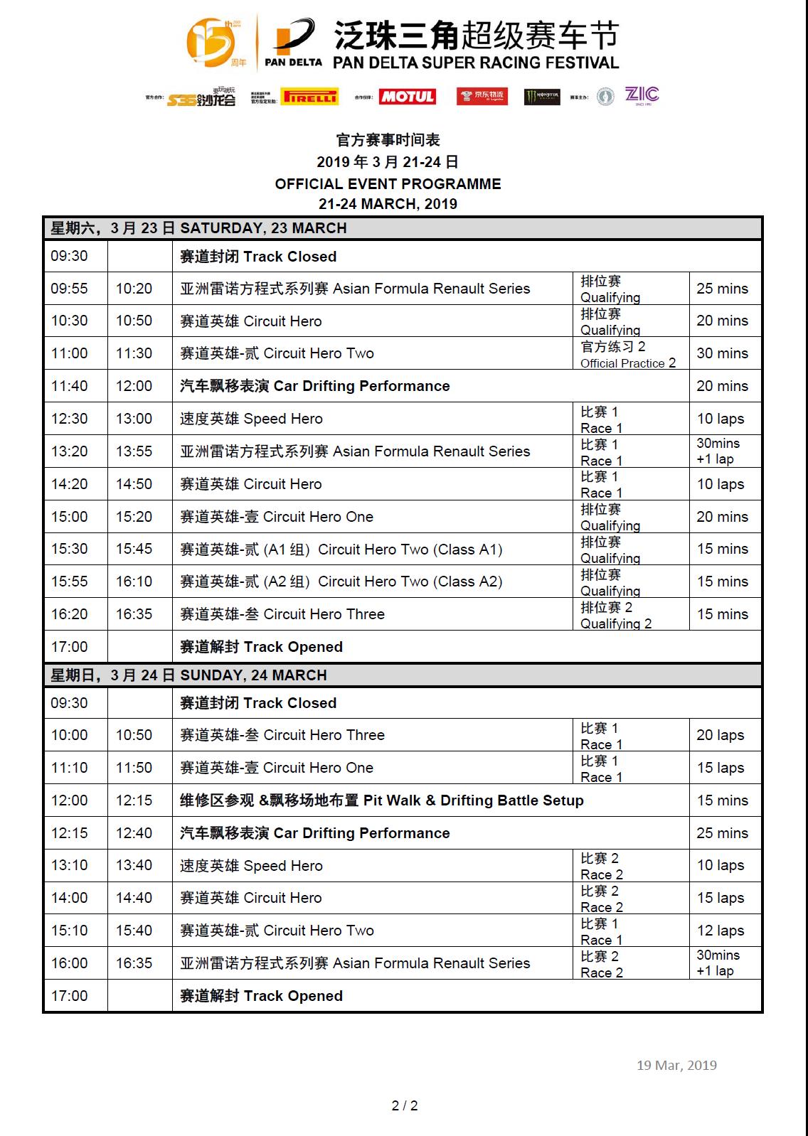 2019泛珠三角超級賽車節(jié)-春季賽官方時間表