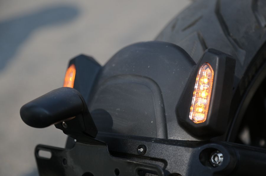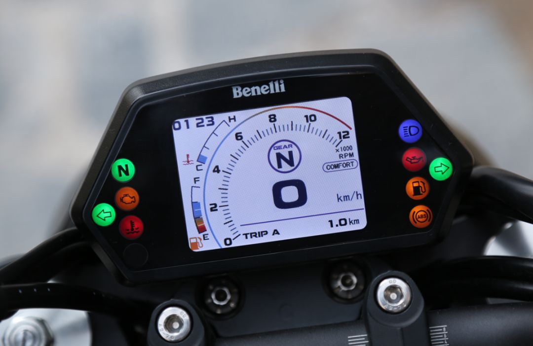 502C的燈光系統(tǒng)頗有特色,正面的大燈采用仿生設(shè)計,LED燈帶勾勒出一副臉部的輪廓,說它像科幻人物也好,還是像孫大圣也罷,起碼個性化和辨識度是到位了。尾燈為分離式布局,除了左右各排列一組剎車燈之外,中間還有一個小尾燈,點亮之后是Benelli的LOGO,無形中提升了整車檔次。后轉(zhuǎn)向燈為了造型位于后牌照架上,為縱向排列,全車燈具為LED光源。