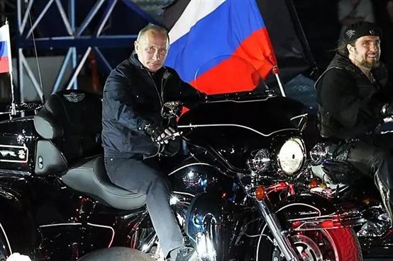 2010年7月24日,普京騎著重型三輪摩托車,出現(xiàn)在烏克蘭舉行的一場摩托車?yán)惙终举惿稀T谥v臺上,普京對臺下7000多名摩托車愛好者說:"兄弟們,你們好!"普京形容摩托車是"最民主的交通工具","它是最大膽,快捷的交通方式,給騎車人以自由的甜蜜感,毫不夸張地說,摩托車是自由的象征!"