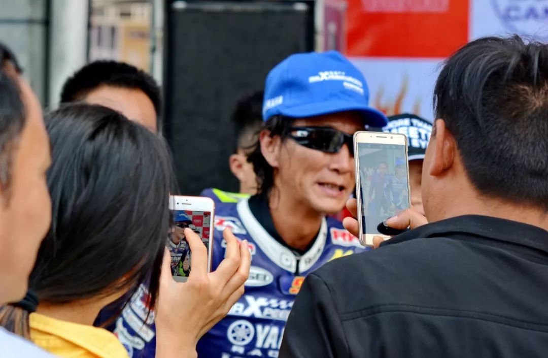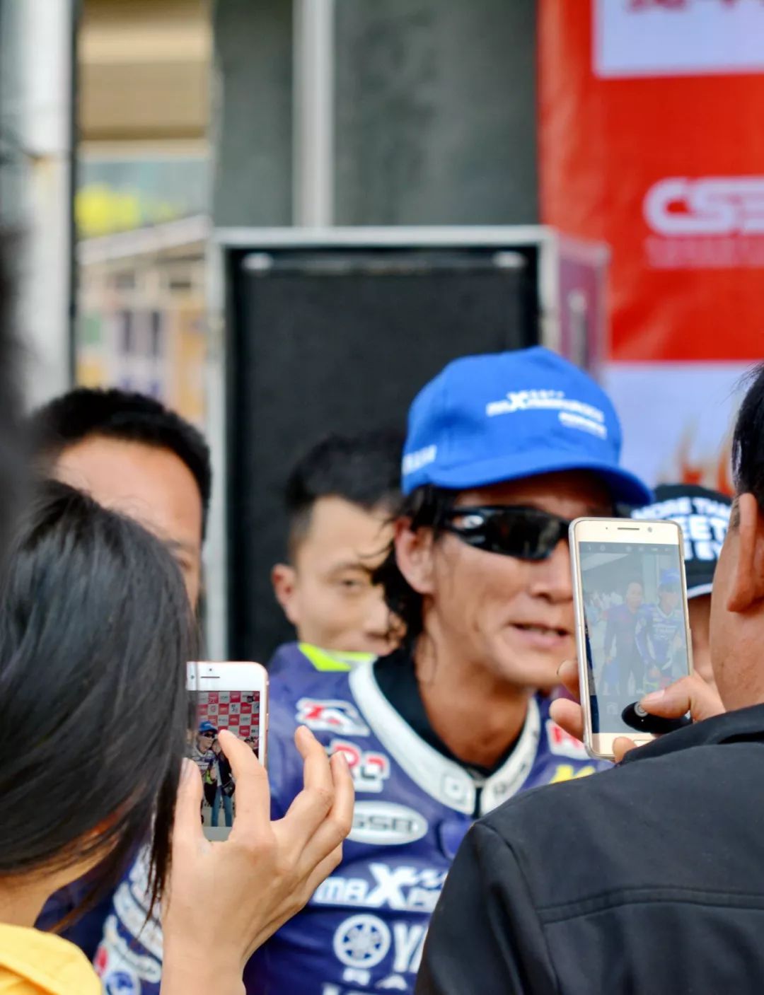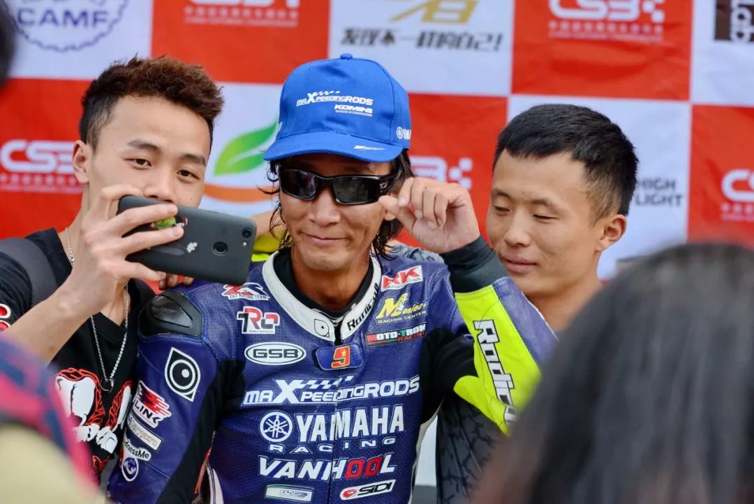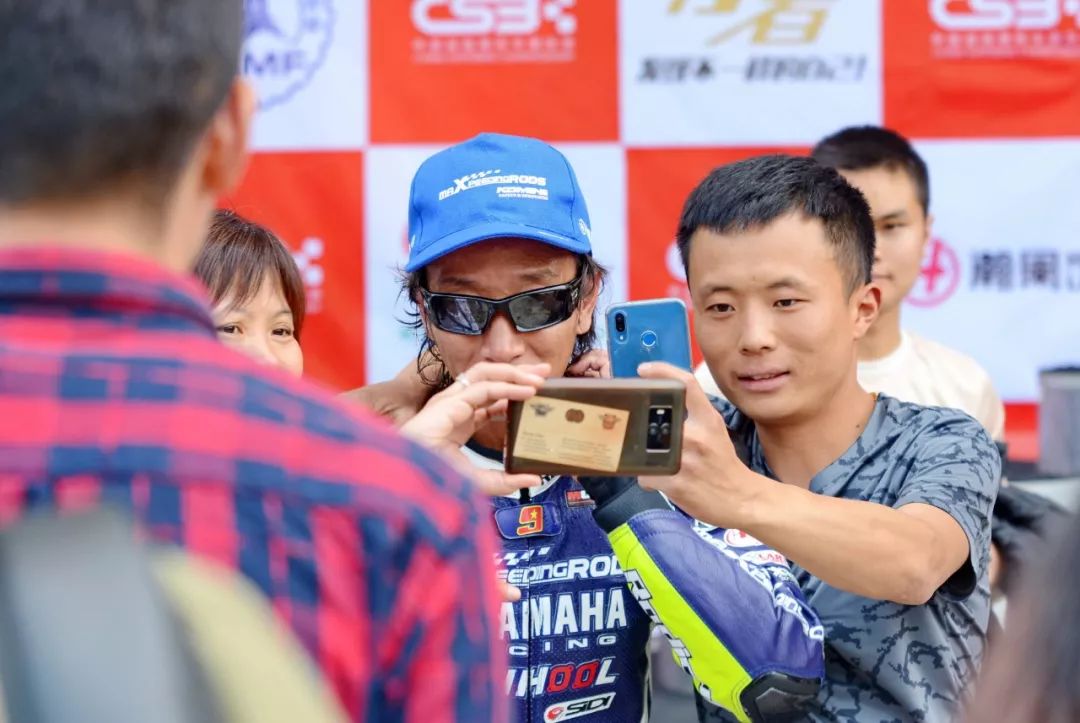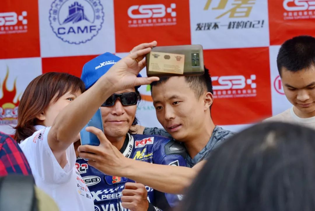 CSBK 最高級(jí)別的 SBK 比賽結(jié)束之后,兩節(jié)比賽都奪得了冠軍的黃世釗,在頒獎(jiǎng)完了之后就被里三層、外三層地包了餃子,密不透風(fēng)。大約在這么半個(gè)鐘頭左右的時(shí)間里,從男女老少到華為、蘋果、Vivo、小米、魅族 ... ... ...