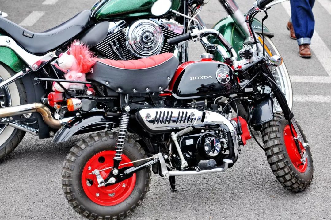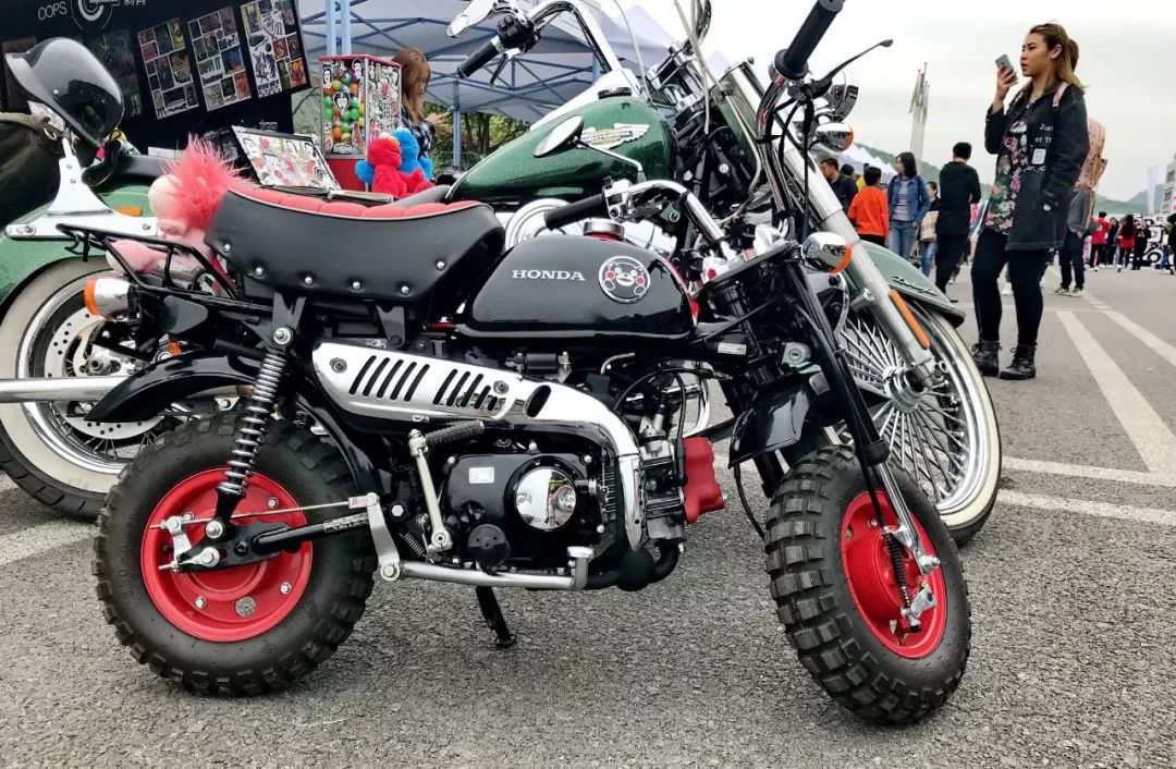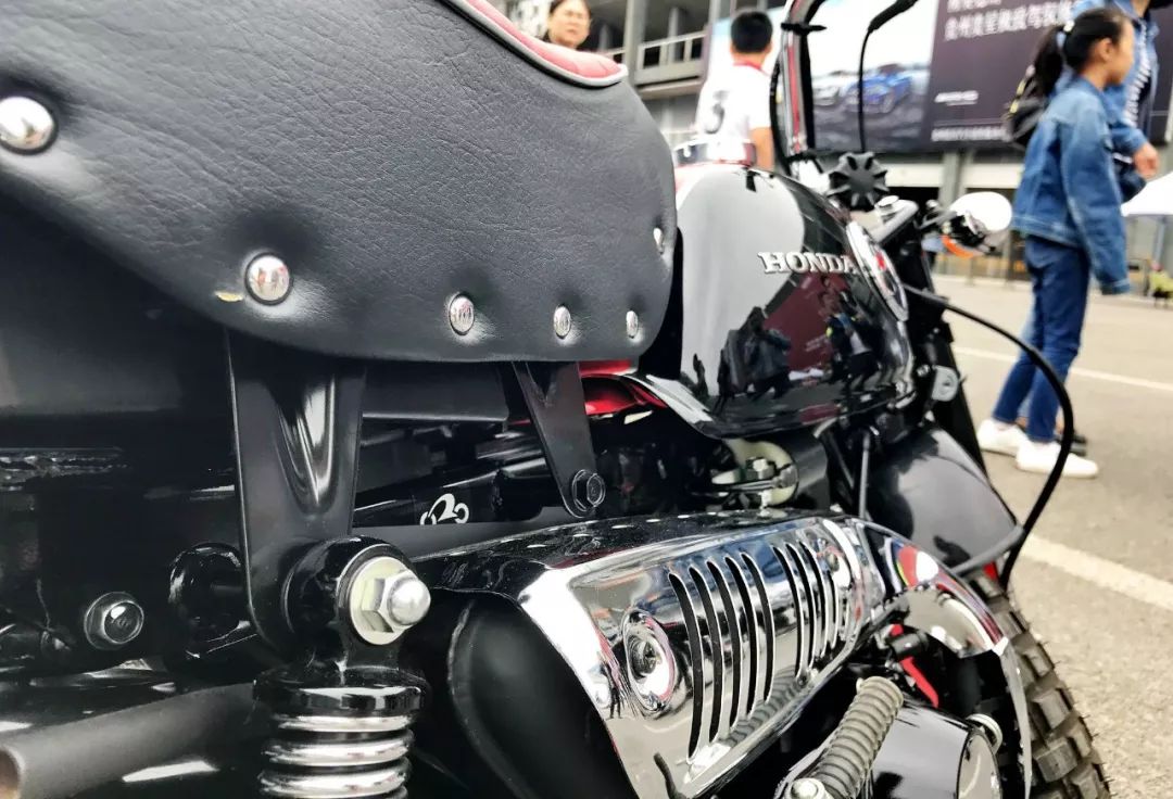 賽車場(chǎng)內(nèi)舉辦了一個(gè)綜合性的展示活動(dòng),而其中一家參展單位的前面,擺出了 Honda 上一代的 Monkey 50 “ 猴子 ” 熊本版。