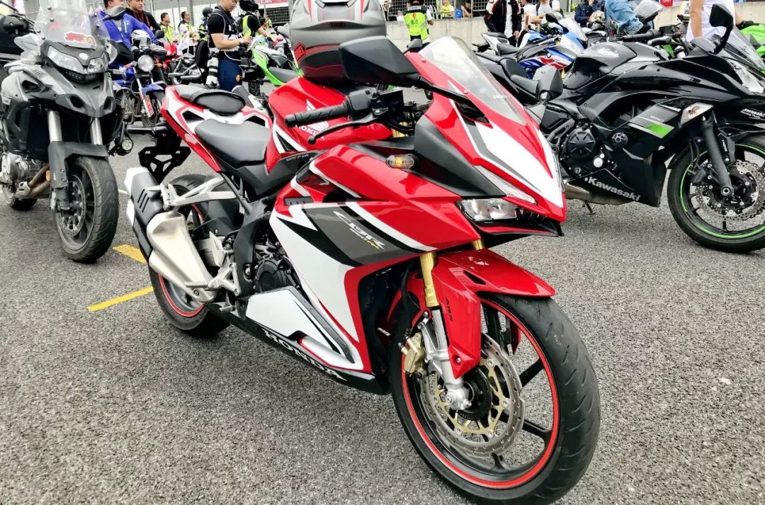 周日的開幕儀式后,賽會(huì)組織當(dāng)?shù)剀囉堰M(jìn)入跑道大巡游。而在紜紜的車流中,看到了這臺(tái)獨(dú)特的 Honda 小型跑車 CBR250RR(細(xì)致地看了一下,可以確定并非地平線),一款國內(nèi)相對(duì)稀罕(至少要比 1000 cc 級(jí)的超級(jí)跑車要少見)的車型。