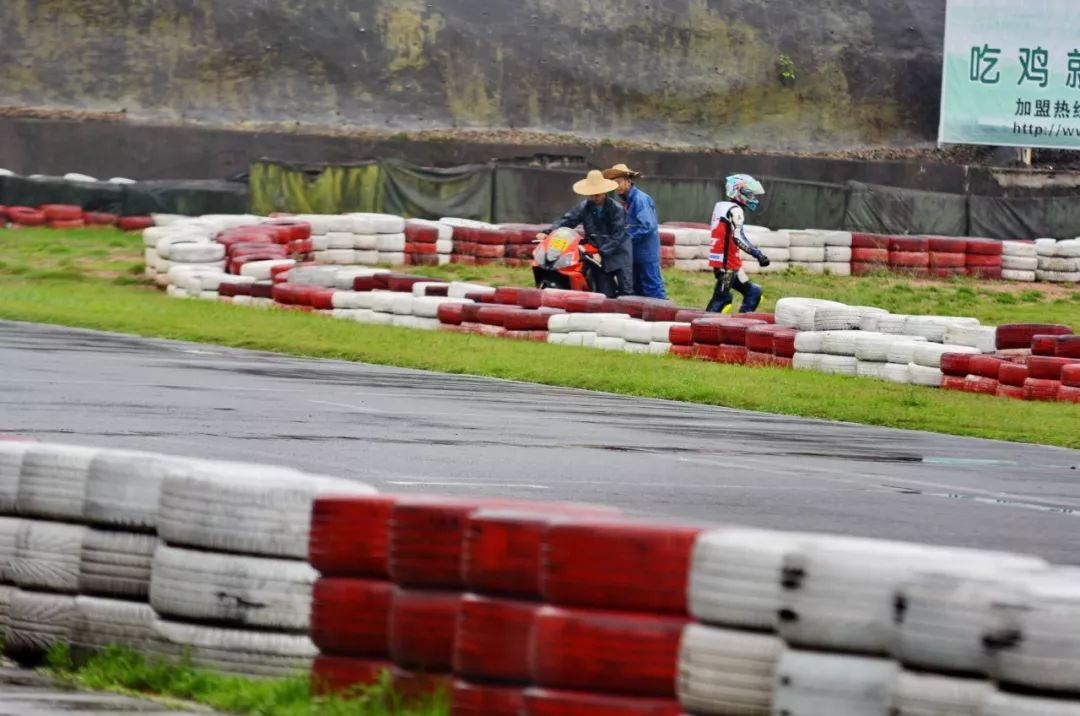 有了這幾節(jié)的帶指導(dǎo)之下的嘗試,學(xué)員們對(duì)于雨中的 “ 放飛 ”似乎適應(yīng)了下來、自信也隨之而來。而學(xué)員中、多人曾有過下賽道的經(jīng)驗(yàn),稍能控制好速度與動(dòng)作、跑起來還不太別扭。而更多的,是進(jìn)彎速度太快導(dǎo)致彎中跑大、無法順利過彎,或者是只能把彎前的速度慢下來 ... ... ... 至于各種各樣的摔,自是層出不窮。