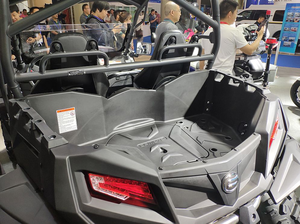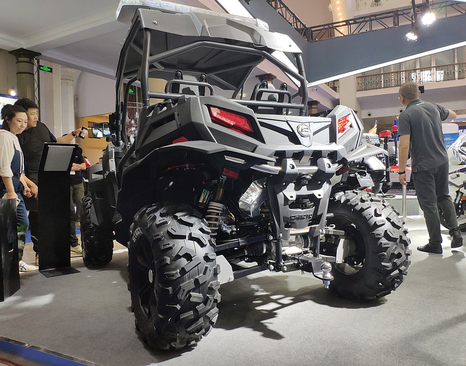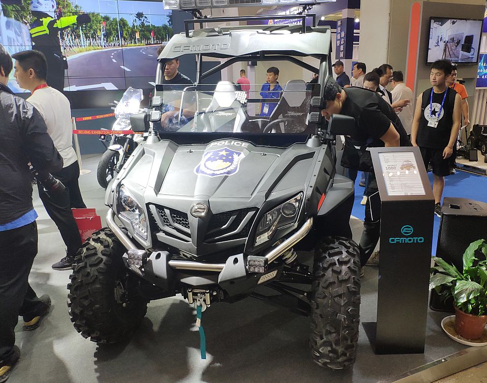 但小編還是立馬找到了此次要一探究竟的目標,春風動力的展臺位于十幾個展區(qū)的中軸線位置上,國賓車和警用摩托車的氣場并不亞于室外的特種汽車,吸引了許多人駐足圍觀拍照,沒錯,就是它了!