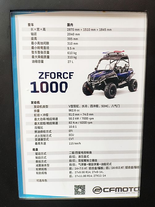 春風Zforce1000全地形車是目前春風UTV家族中的旗艦產(chǎn)品,搭載水冷8氣門V型雙缸發(fā)動機,排量962.6mL,采用博世電噴,可以輸出60kW最大功率和86.2Nm的最大扭矩。四輪采用了可調(diào)的獨立懸掛,整車最小離地間隙達到了285mm,通過電控按鍵可以使Z1000在兩驅(qū)、四驅(qū)以及全輪差速鎖之間切換,達到更好的通過性能。