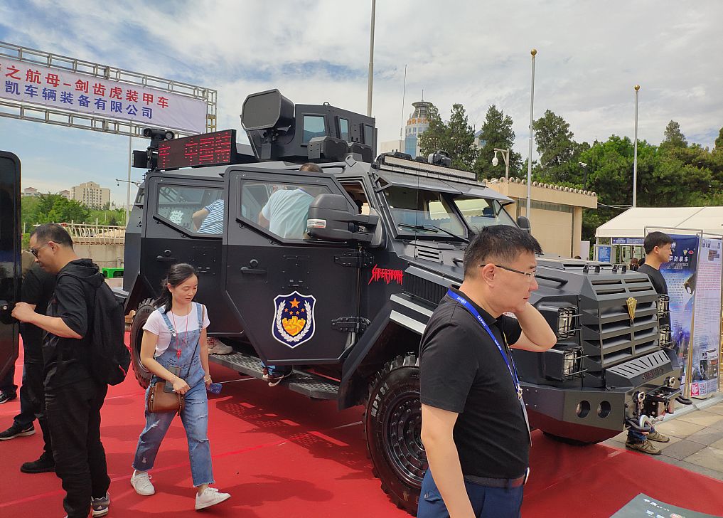 進入展區(qū)大門后,映入眼簾的外場大空地上是各式各樣的特種車輛,有大家比較熟知的劍齒虎、恐狼以及一大堆叫不出名的防暴車、運輸車、指揮車等特種車輛,看著這些動不動就重達幾噸,搭載了V8、V12的大家伙,能這么近距離觀看還是蠻有意思的,過完了眼癮繼續(xù)往前走便到了室內(nèi)展區(qū)。室內(nèi)展館聚集了五花八門的警用裝備和警具、防暴器械、智能安保系統(tǒng)等,著實讓人眼花繚亂。