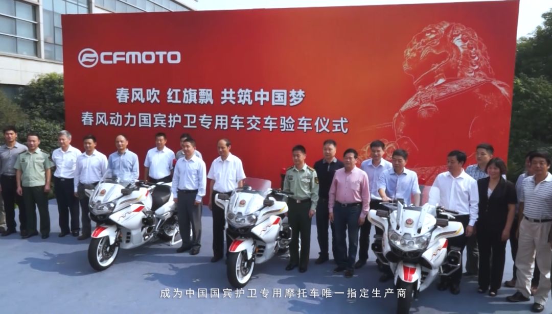 再來說說國賓護衛(wèi)隊和國賓車的故事吧,國賓護衛(wèi)隊作為我國閃亮的一張外交名片,也是中國大國實力崛起的見證者之一。2014年,暫停十余年的國賓摩托車護衛(wèi)隊制度得以恢復。同時,我國自主民營品牌“春風動力”從200多家摩托車制造企業(yè)中脫穎而出,CF650G被選中成為武警國賓護衛(wèi)隊的專用摩托車,結(jié)束了我國國賓護衛(wèi)隊之前一直采用本田、寶馬等進口品牌的歷史,“春風”與“紅旗”一起,成為了代表國家尊嚴和國家實力的國賓禮儀用車。