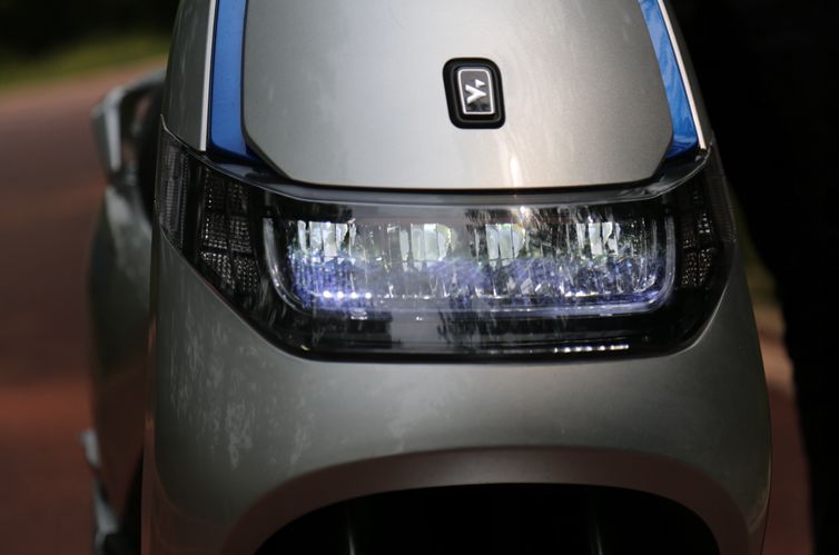 森藍O2的外觀可以說是獨樹一幟,有著很高的原創(chuàng)度,車身造型簡約圓滑,給人一種非常明快的感覺。無邊界造型的懸浮式LED大燈突破了傳統(tǒng)造型,既新潮又科技感十足。在車頭的前面板下方,還藏有呼吸式的氛圍燈,柔和的藍色光帶為夜晚騎行增添了更多情調(diào),這樣的搭配第一眼就給人留下了非常都市范兒的印象。