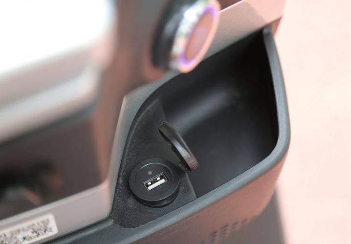 O2配備了一塊LCD液晶儀表,在強光下也非常清晰,行車信息包括擋位、氣溫、時速、百分比電量顯示、總里程和單次小計里程等信息。在多媒體控制鍵處及前儲物格處各有一個USB接口,再也不用擔心電子設備沒地充電。
