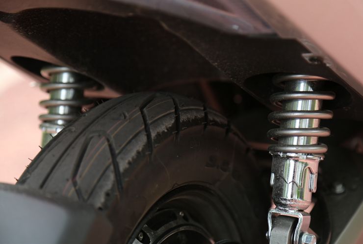 O2在制動方面采用了前后碟剎的配置,前單向雙活塞卡鉗配200mm制動盤,后單活塞卡鉗配180mm制動盤,提供更穩(wěn)定的制動效果,剎車上泵的油壺還采用了藍色透明罐體,非常美觀且契合車輛基調(diào)。減震方面采用前正置減震和后雙彈簧減震的組合,后減震支持預載可調(diào)。輪胎采用前后10寸的誠遠輪胎。全機器人焊接的鋼管圍欄車架搭配鋁合金后平叉為良好的操控和穩(wěn)定性提供基礎,同時有更好的強度及耐用性。此外側(cè)支斷電保護功能的加入也為騎行安全加了一把防護鎖。