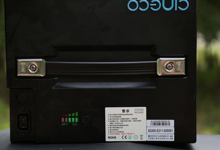 O2動力方面搭載了1200W的森藍直流無刷電機,最高能效比達到92%,峰值扭矩120Nm,支持3擋動力調(diào)節(jié)及定速巡航。我們拿到的這臺豪華版電池規(guī)格為60V24Ah,電池重量僅有9kg,如果需要取下電池充電也可以接受。采用三元鋰材料,18650電芯,不僅擁有超長循環(huán)壽命、更大電芯容量、高能量密度,而且耐低溫性能更佳。