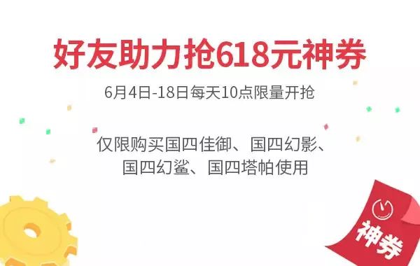 300元神券還不夠刺激?那618元的神券想不想要?6月4日-18日每天10點,召喚好友來助力,神券就是你的了!數(shù)量有限,先到先得。