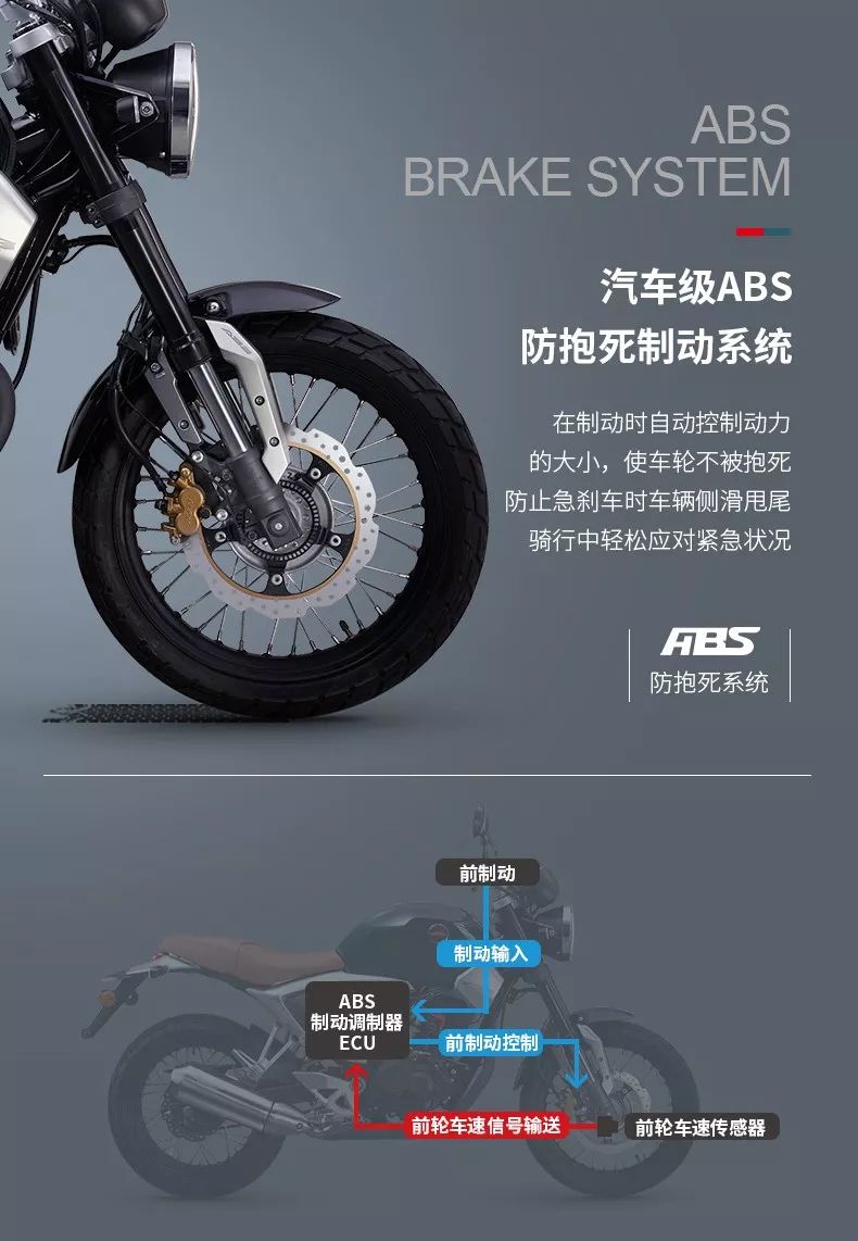 很多用戶也比較關(guān)心五羊-本田首次配置的ABS設(shè)備在鷙道190上的表現(xiàn),可能也有很多人問為什么這款車只在前輪加入了ABS呢?我個人認(rèn)為,前減震經(jīng)過重新調(diào)校以后,后輪發(fā)生抱死的概率明顯降低,整體制動表現(xiàn)相對國三版190車型大幅提升,足夠讓騎手在大力制動時感到穩(wěn)定和踏實,因此前輪ABS對于鷙道190整體來說完全夠用。