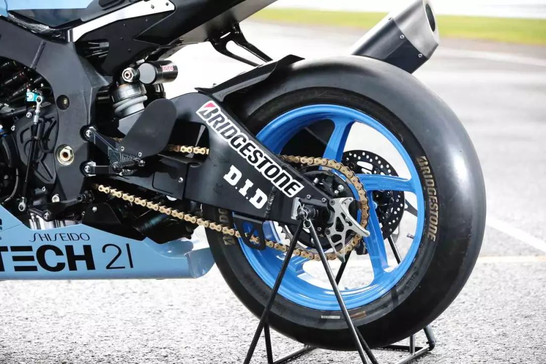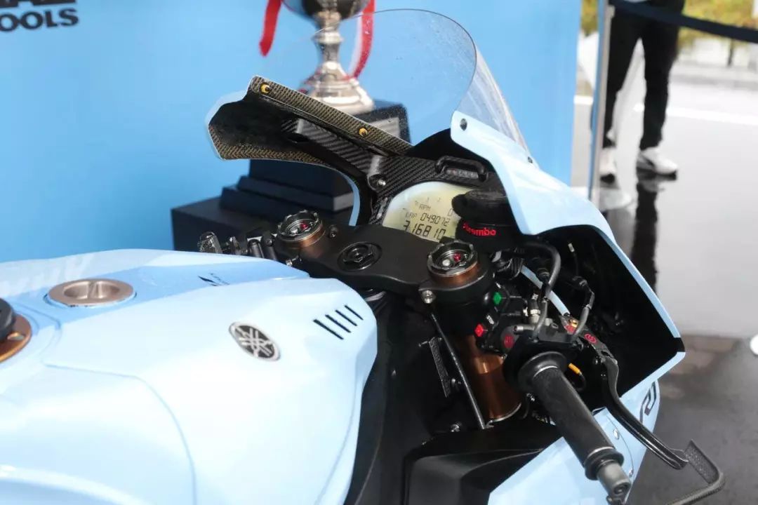 下面的圖片、這臺 Tech21 復(fù)刻圖案的 YZF-R1 在跑道上的特寫。