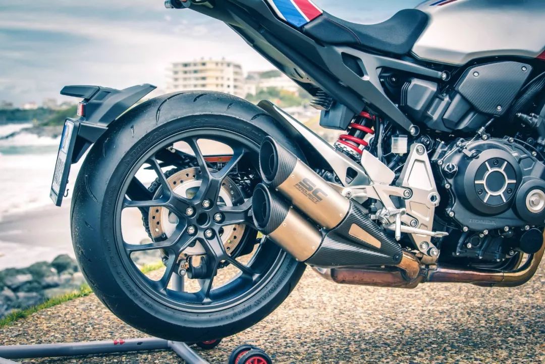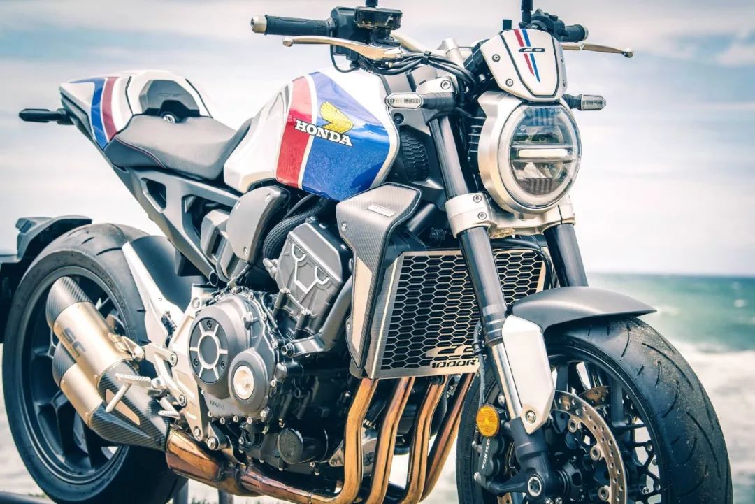 限量版的 CB1000R 采用了一個(gè) HRC(Honda Racing Corp,Honda 賽車公司)的紅/藍(lán)線條外觀圖案,換裝了重量更輕、來自意大利 SC-Project 的 Split-level(裂縫系列)排汽系統(tǒng),標(biāo)配了水箱護(hù)網(wǎng)、乘客座位蓋等原廠附件,并有多處改裝了同樣來自 SC-Project 的碳纖維組件。