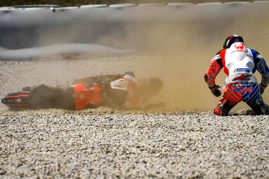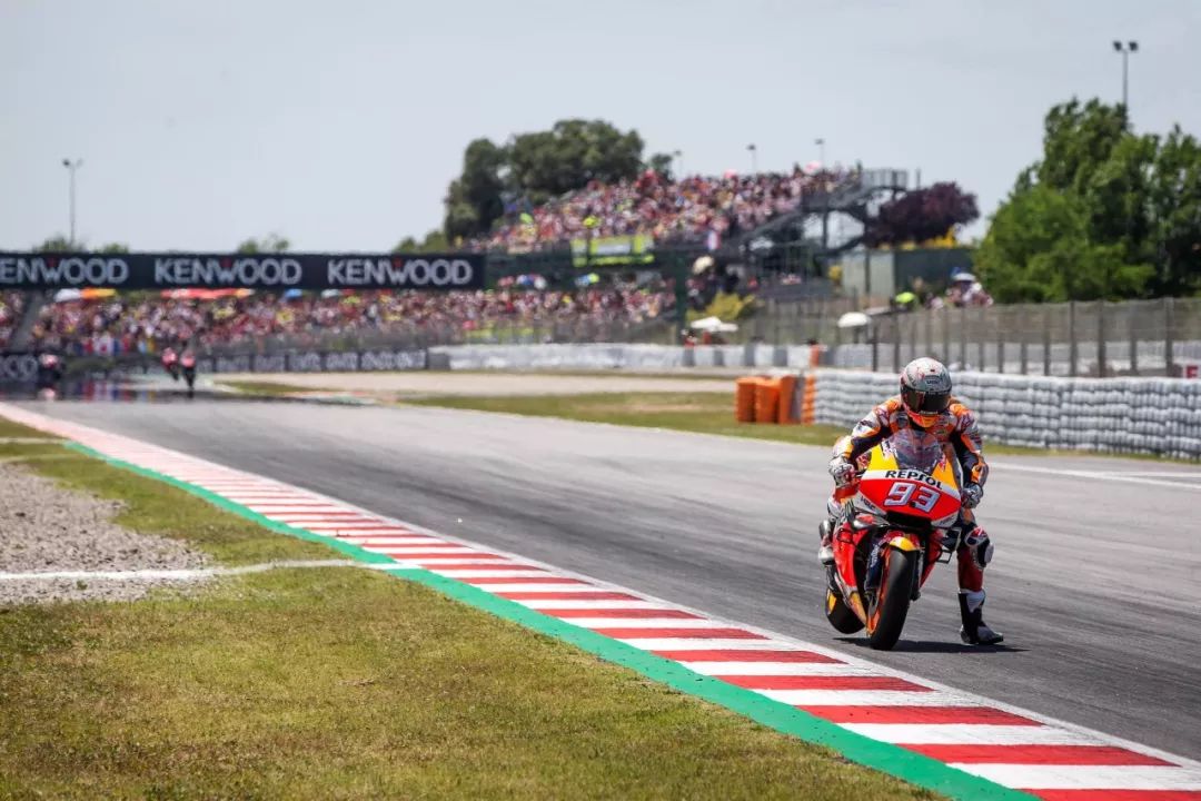 這一場(chǎng)的加泰羅尼亞站比賽可謂狀況連連,MotoGP 級(jí)別的二十四位參賽車(chē)手,有十一人先后由于各種的原因而退賽。