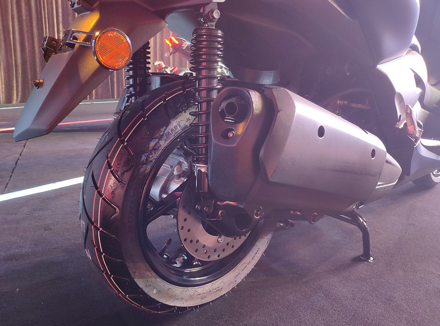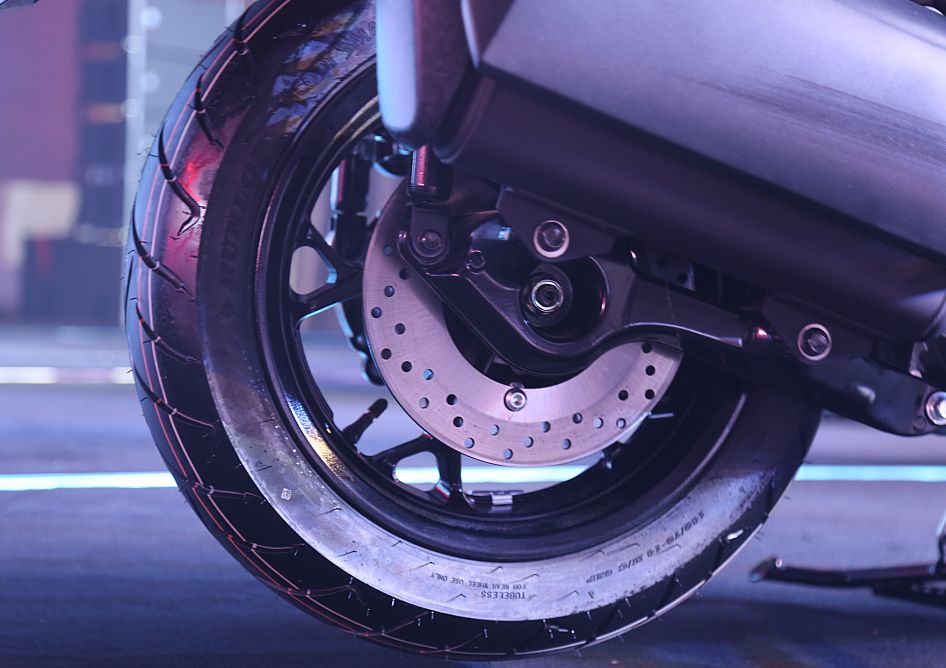 在配置上這款車也十分豐富,前15寸后14寸的輪轂搭配120/70和140/70的輪胎給你更好的穩(wěn)定性和更高的可玩性??烧{(diào)的風(fēng)擋以及帶腰靠的座墊能夠給你提供良好的舒適性,甚至連車把都可以根據(jù)自己需要調(diào)整角度。約45L的大容量座桶空間可以放下兩頂頭盔,前置儲物空間內(nèi)的電源接口也能滿足你對外出充電的需求。在電子配置方面,這款車不僅有無鑰匙啟動和ABS,還有在這個級別踏板車中不常見的可關(guān)閉TCS牽引力控制系統(tǒng),也讓這款車更加安全。制動方面配備了前267mm制動盤加雙活塞卡鉗,后制動為245mm制動盤加單活塞卡鉗,減震方面前正立式前叉行程110mm后雙筒減震器行程79mm。