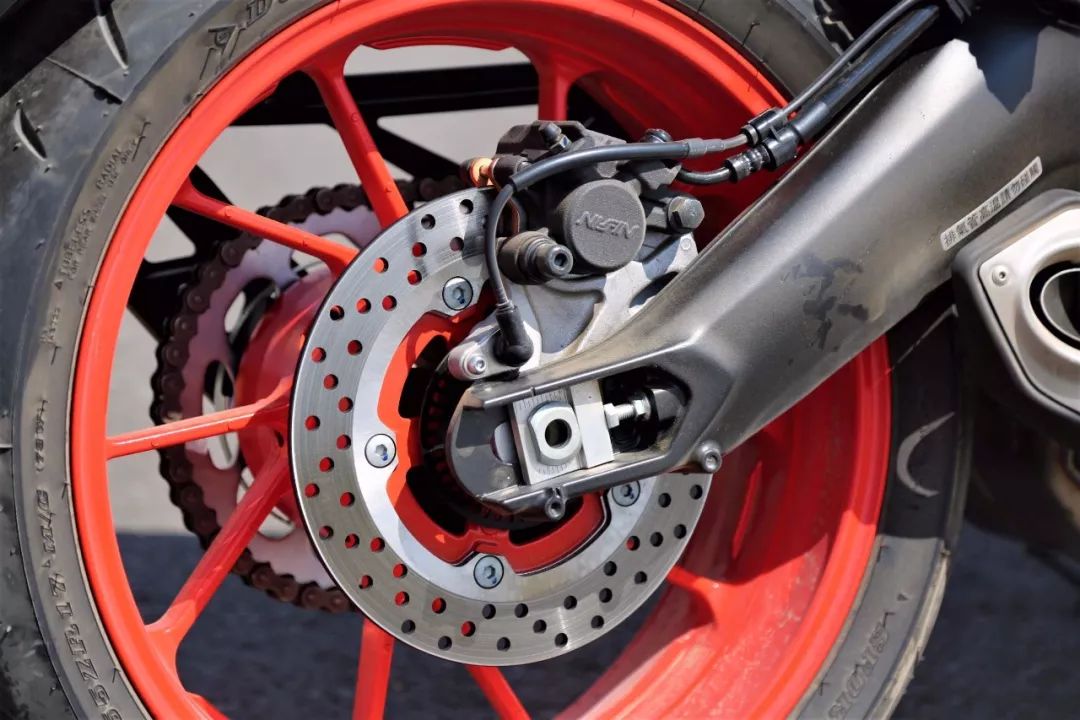 整車的減震系統(tǒng)為全可調(diào)設(shè)計(jì),這是這款車運(yùn)動(dòng)取向的體現(xiàn)之一。當(dāng)天的試駕中我并沒有調(diào)節(jié)前減震,給我的感受在阻尼方面略有些偏軟,比較符合舒適化的城市場(chǎng)景調(diào)校,而后減震則比較適中,相信在調(diào)整過之后會(huì)有不錯(cuò)的運(yùn)動(dòng)表現(xiàn)。整車的制動(dòng)力給人印象深刻,前制動(dòng)有種“撞墻”的感覺,配合下沉的車頭設(shè)計(jì),制動(dòng)過程中給你很強(qiáng)的前傾感,前制動(dòng)的ABS介入很早,這也從側(cè)面體現(xiàn)了這款車制動(dòng)力的強(qiáng)大。