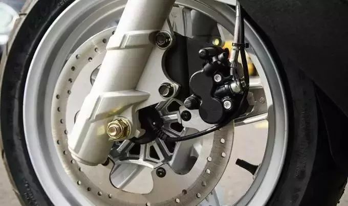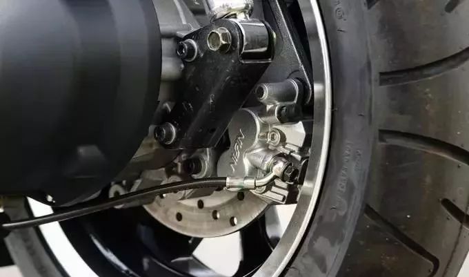 后剎車也采用240mm單碟配上Nissin單活塞卡鉗輪胎規(guī)格.前120/70-14.后150/70-14