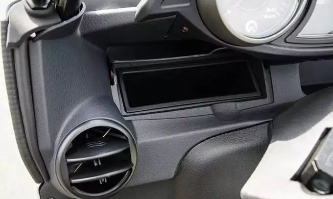 在儀表板的右側(cè)有一個制物凹槽兩側(cè)都備有出風(fēng)口.行駛時可導(dǎo)風(fēng).降低一些燜熱感
