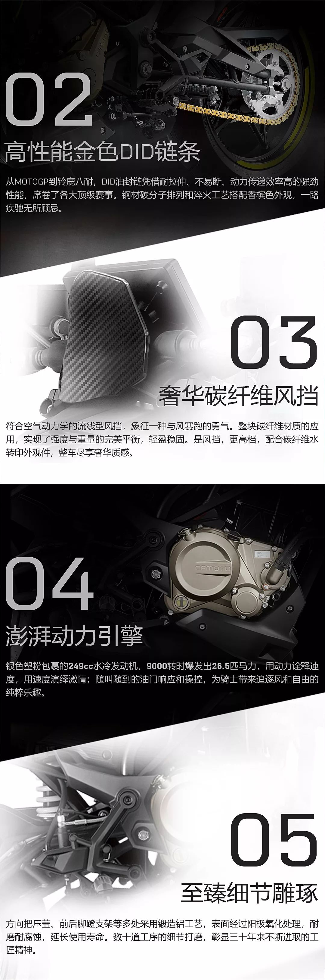 專屬配色、DID鏈條、碳纖維風(fēng)擋、細(xì)節(jié)雕琢