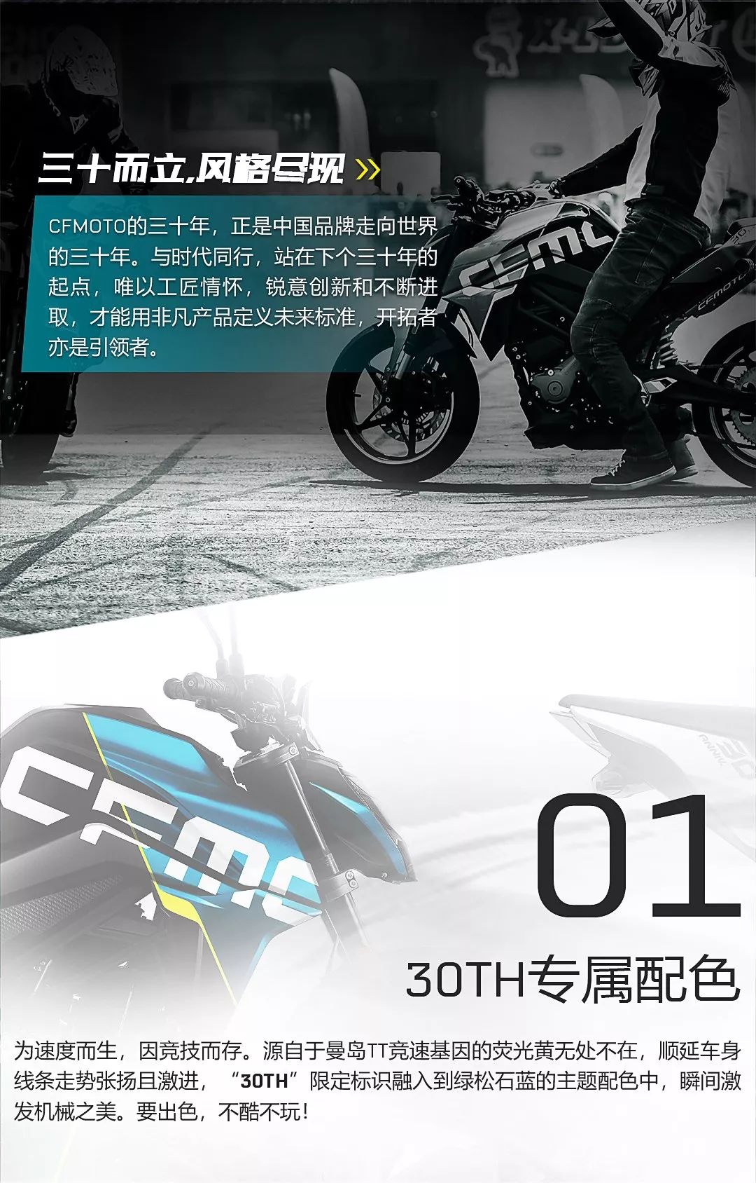 核心提示:CFMOTO的30年,正是中國品牌走向世界的30年銳意進(jìn)取,與時代同行,CFMOTO匠心打造250NK三十周年紀(jì)念版專屬配色、DID鏈條、碳纖維